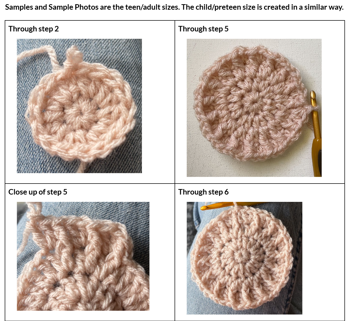9. Repeat the previous round for an additional 5 rounds. Please check gauge and adjust hook size if needed.
