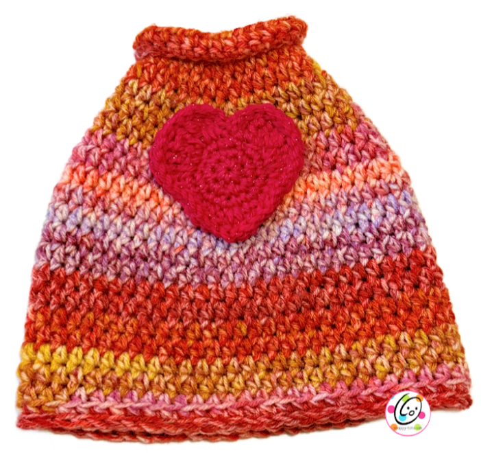 - For a slightly smaller heart, use an F hook. Lighter weight yarn could also be used for an even smaller heart for the dress/ sweater.