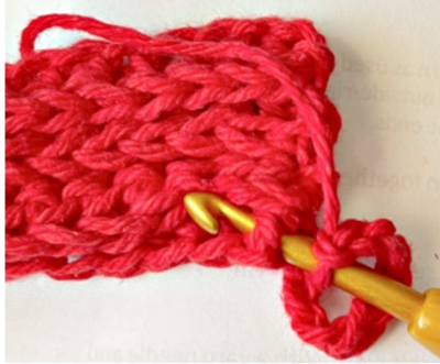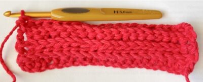 1. With an H hook and worsted weight yarn, ch 11, sc in the 2nd ch from hook and in each ch across. (10sts)