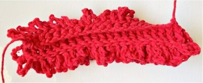 2-3. Ch 1, turn, sc in the same st and in each st to end of row. Finish off, leaving a long tail.