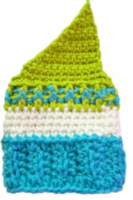 Fold the tip down as shown in the photo. Use a yarn needle and the yarn tail to sew the hat tip in place.