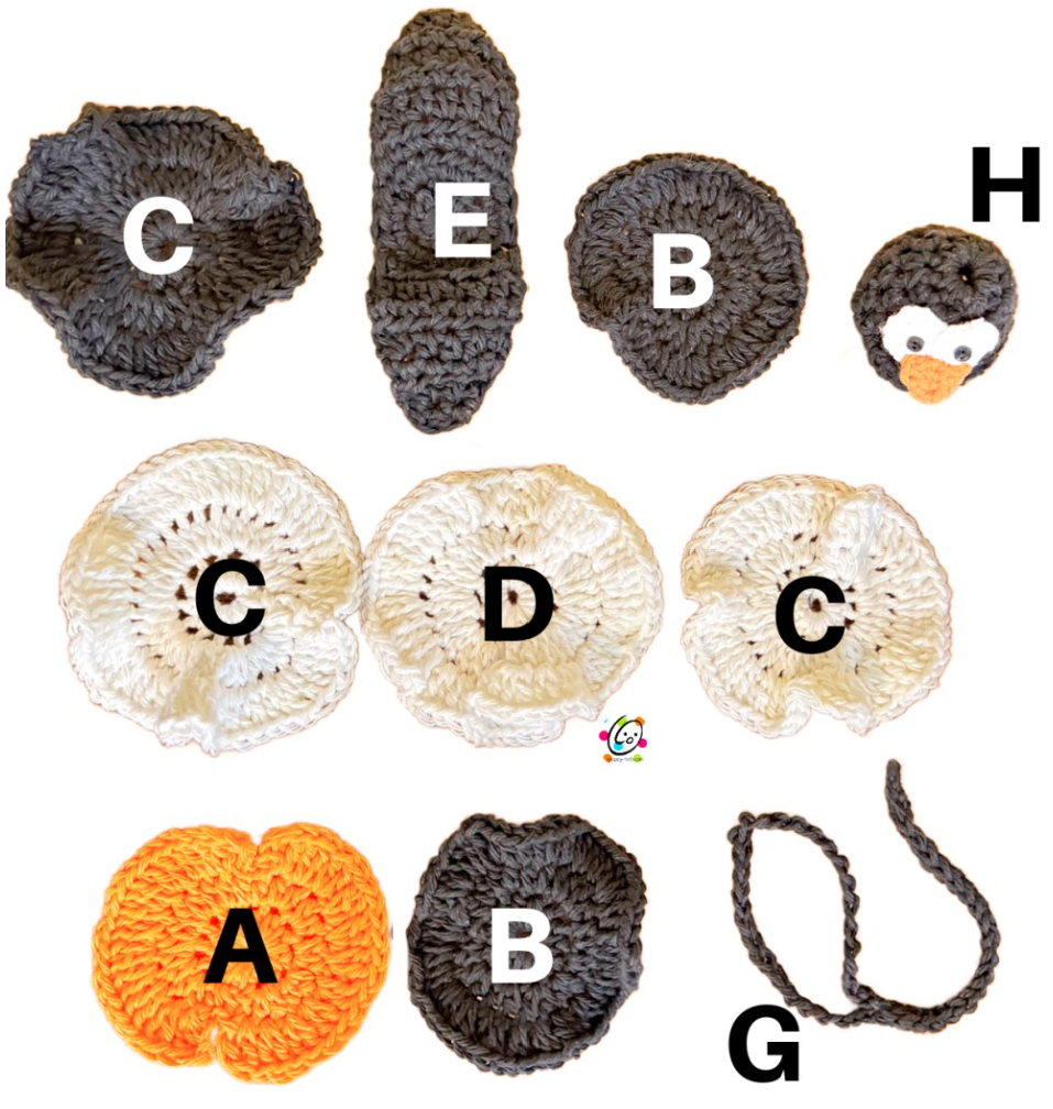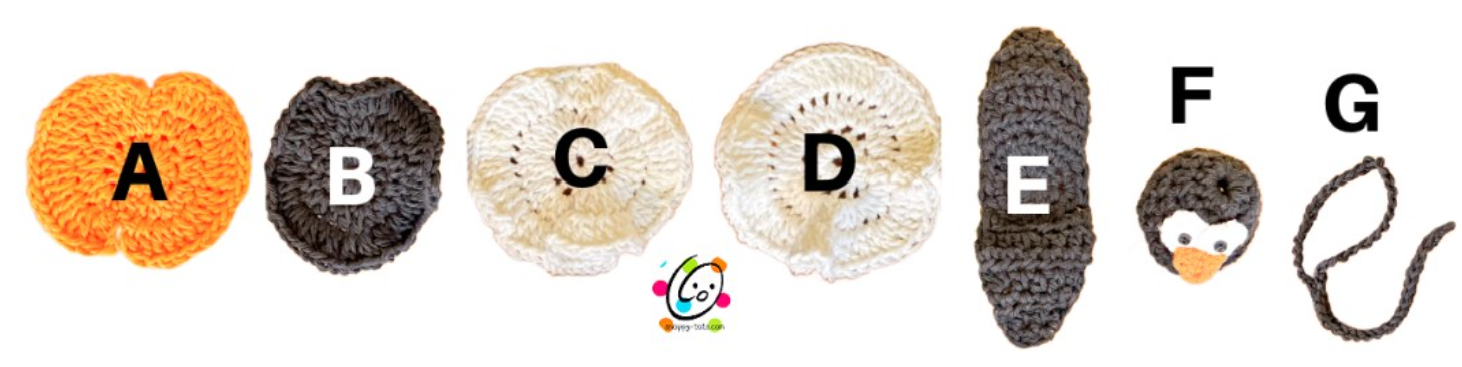 - Notions: Yarn needle for weaving in ends, scissors, sewing needle, thread, 2 small black buttons