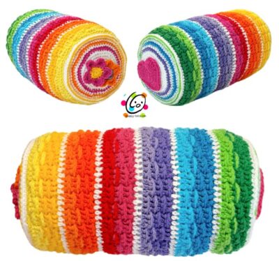 Long, round pillows (aka Bolsters) have always been one of my favorites and something I have wanted to design. For one of my events, I thought it would be fun to make one with interchangeable pieces for each end. Hence, the birth of my “All Seasons Bolster” (available from Etsy and Ravelry).