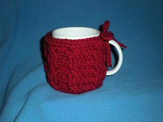 | I love coffee cozies. This cabled cozy made from a free pattern by “Schmutzerellas Crafts” would make a wonderful gift that keeps reminding friends how much you care. |