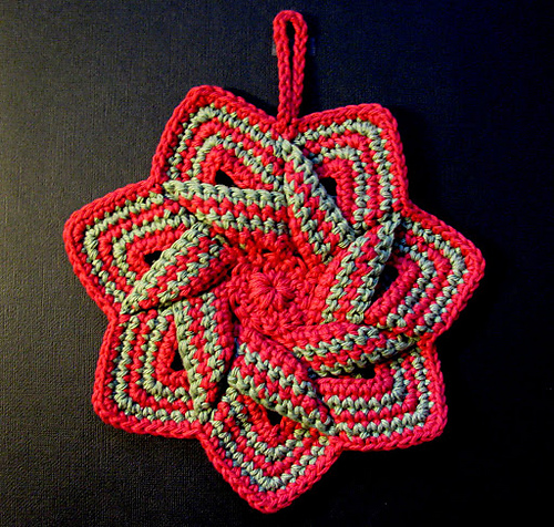 | I LOVE dish towels with crocheted tops. This is even better, giving any towel a handy place. These work up quickly. Add a Christmas towel to this hanger made from a “Little Birdie Secrets” free pattern for a nice neighbor or teacher gift. |
